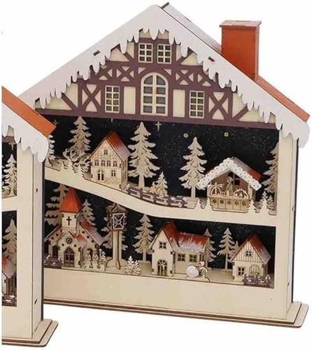 BOLTZE CASETTA IN LEGNO CON PAESAGGIO NATALIZIO E LUCI LED - DIMENSIONI CM7,5x30x31